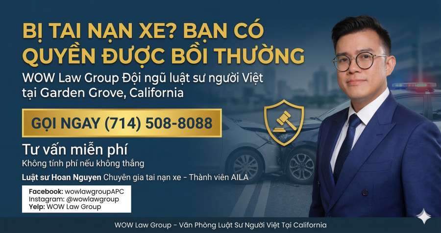 - Nếu bạn bị tai nạn và cần hỗ trợ pháp lý, gọi WOW Law Group: (714) 508-8088 — tư vấn miễn phí bằng tiếng Việt.
